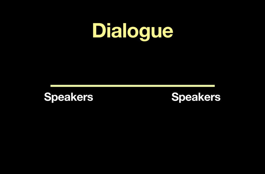 So there are a few versions of “dialogue” that I don’t think go far enough. The major question to ask whether something is dialogical or monological is this :